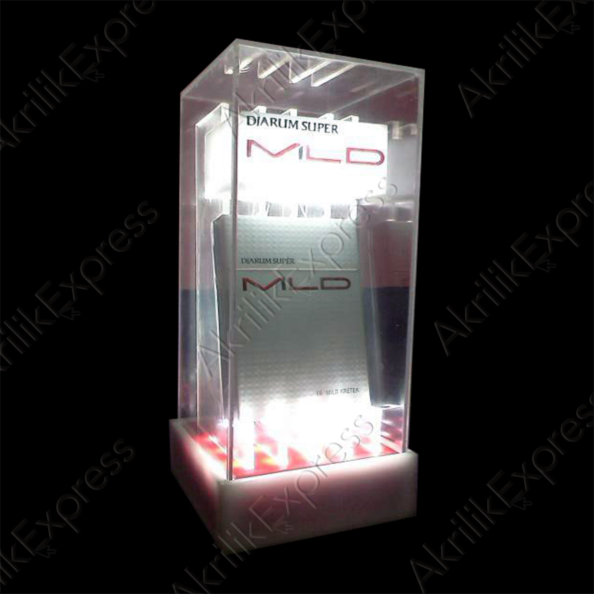 Akrilik bening, Akrilik putih susu, Akrilik merah, LED